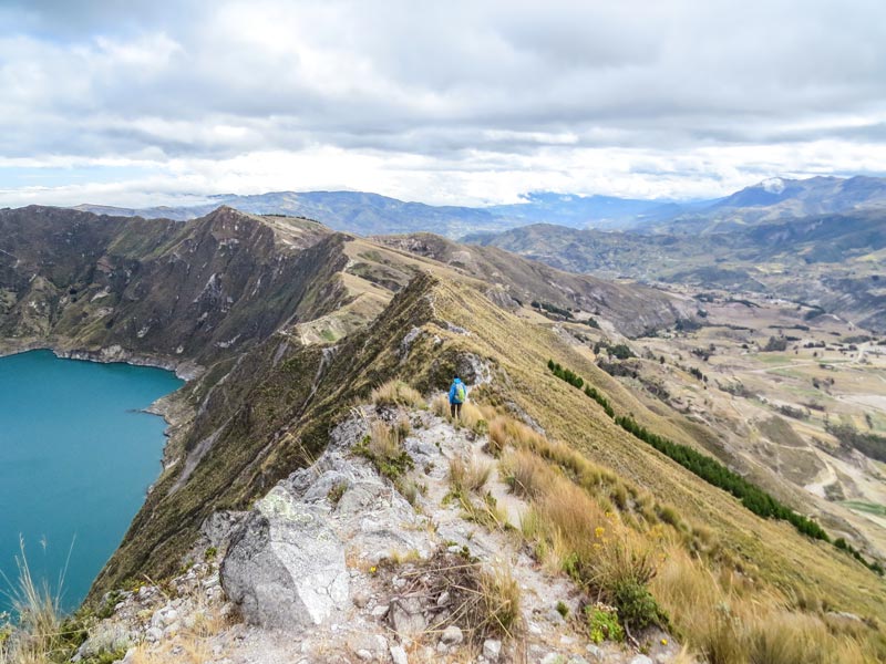 Der Quilotoa Vulkan Kratersee liegt auf 3914 m. Der See bekommt seine tolle Färbung durch Mineralien im Wasser. Die Quilotoa Loop Rundwanderung führt ca. 4-5 Stunden um den See herum. Dabei geht es steile Passagen auf und ab, entlang der Klippen und teilweise nur auf einem schmalen Grat.