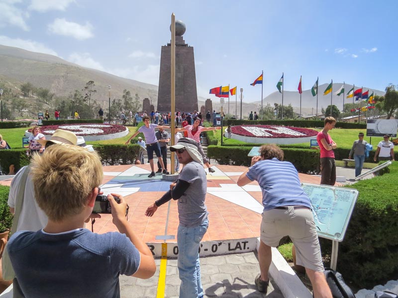 Der Echte liegt nämlich 240 m weiter nördlich, auf dem Weg nach Otavalo eher unscheinbar direkt an der Straße. In Wirklichkeit stehen die Leute also nur auf der Südhalbkugel! Du kannst dort hinfahren und dir von einem Tourguide alles dazu erzählen lassen. Auch, dass schon in der Präinkazeit Vermessungen stattfanden, um den Äquator zu bestimmen.