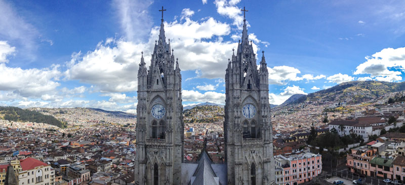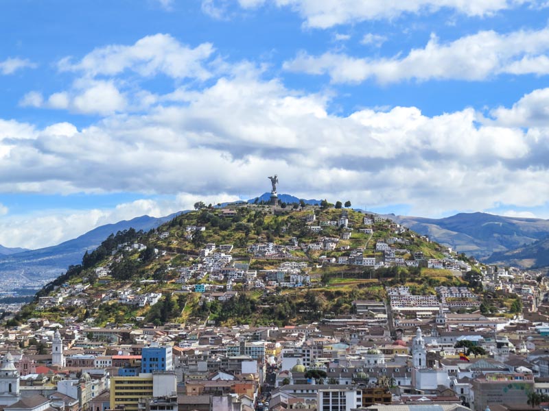 Die Hauptstadt Ecuadors (auf 2850 m) gilt mit seinen 2,2 Millionen Einwohnern nicht als das sicherste Pflaster, aber die Stadt hat einiges zu bieten. Von Quito aus kommt man in den Dschungel, zu tollen Vulkanen, zu den Galapagos Inseln und vieles mehr. Die Stadt ist alleine schon von 14 Vulkanen umgeben. Einer der bekanntesten Vulkane ist der Cotopaxi (5897 m). Von der Stadt aus hat man eine spektakuläre Aussicht auf den Vulkan.