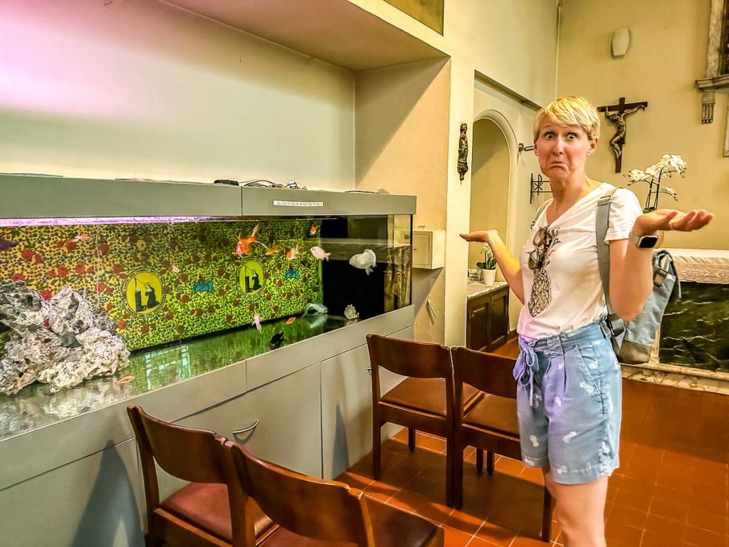 Fun Fact: In der Krypta findest du ein großes Aquarium mit Fischen. Wir haben ehrlich gesagt noch nie Fische in einer Kirche gesehen.