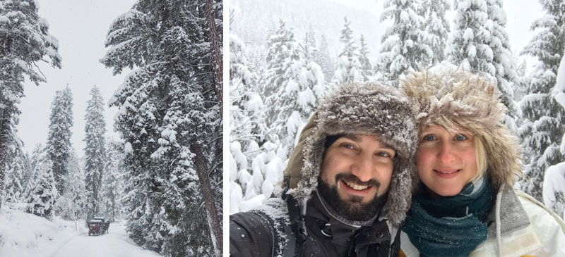 Danach geht es zum Wandern durch ein Winterparadies. Trotz des trüben Himmels sind wir total begeistert von dieser märchenhaften Winterlandschaft. Wann hatten wir das letzte Mal soviel Schnee?