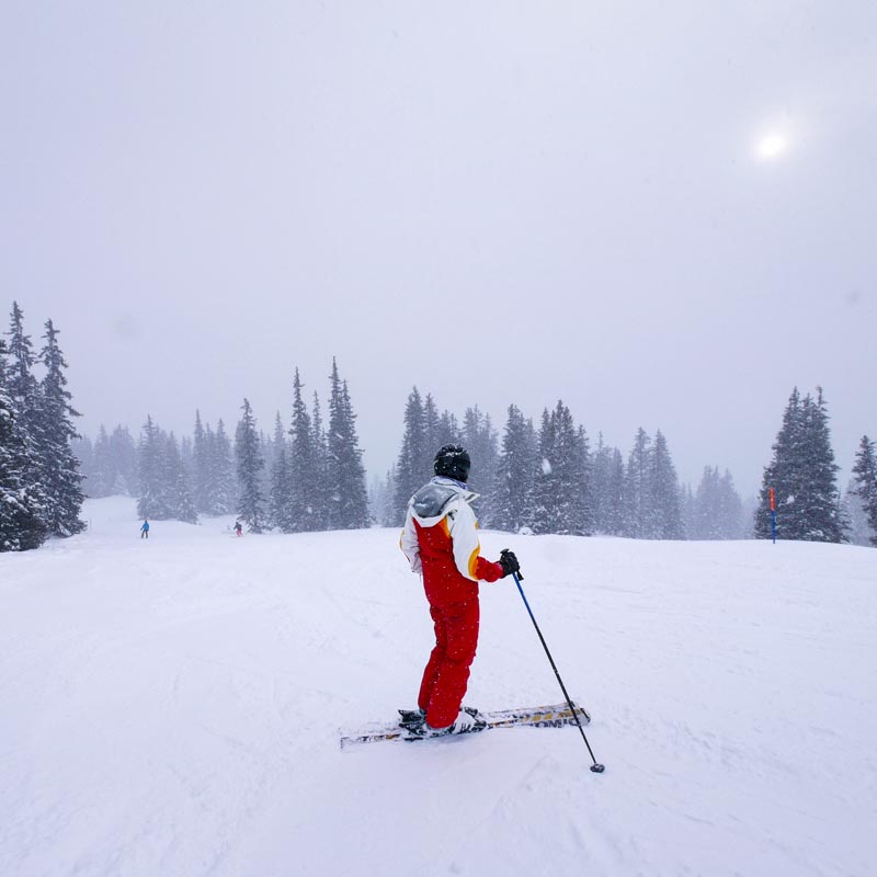 Nach zwei Jahren ohne Skifahren muss ich mich erst wieder langsam eingewöhnen. Der Schnee ist butterweich, allerdings verschwimmen alle Konturen und Unebenheiten im grauen Licht. Da ich zugegebener Maßen ein absoluter Schönwetterfahrer bin, reicht mir der Vormittag zum Fahren völlig aus.